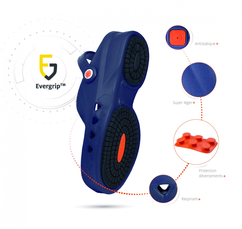 La technologie EVERGRIP™ avec sa formule unique et exclusive vous assure la meilleure adhérence au sol et vous protège des risques de glisser.